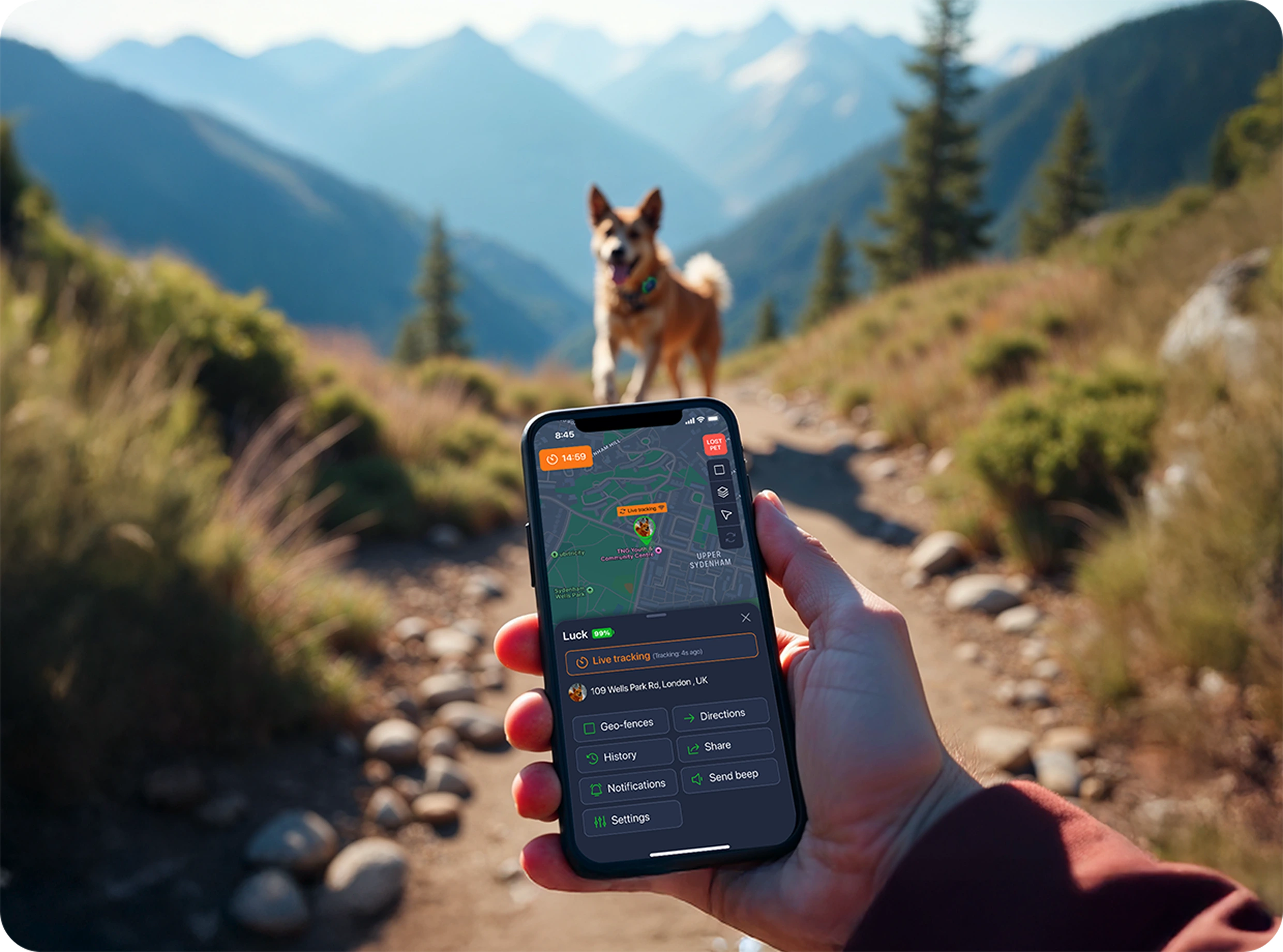 The Petloc8 App is where you can view your dog’s location. It also