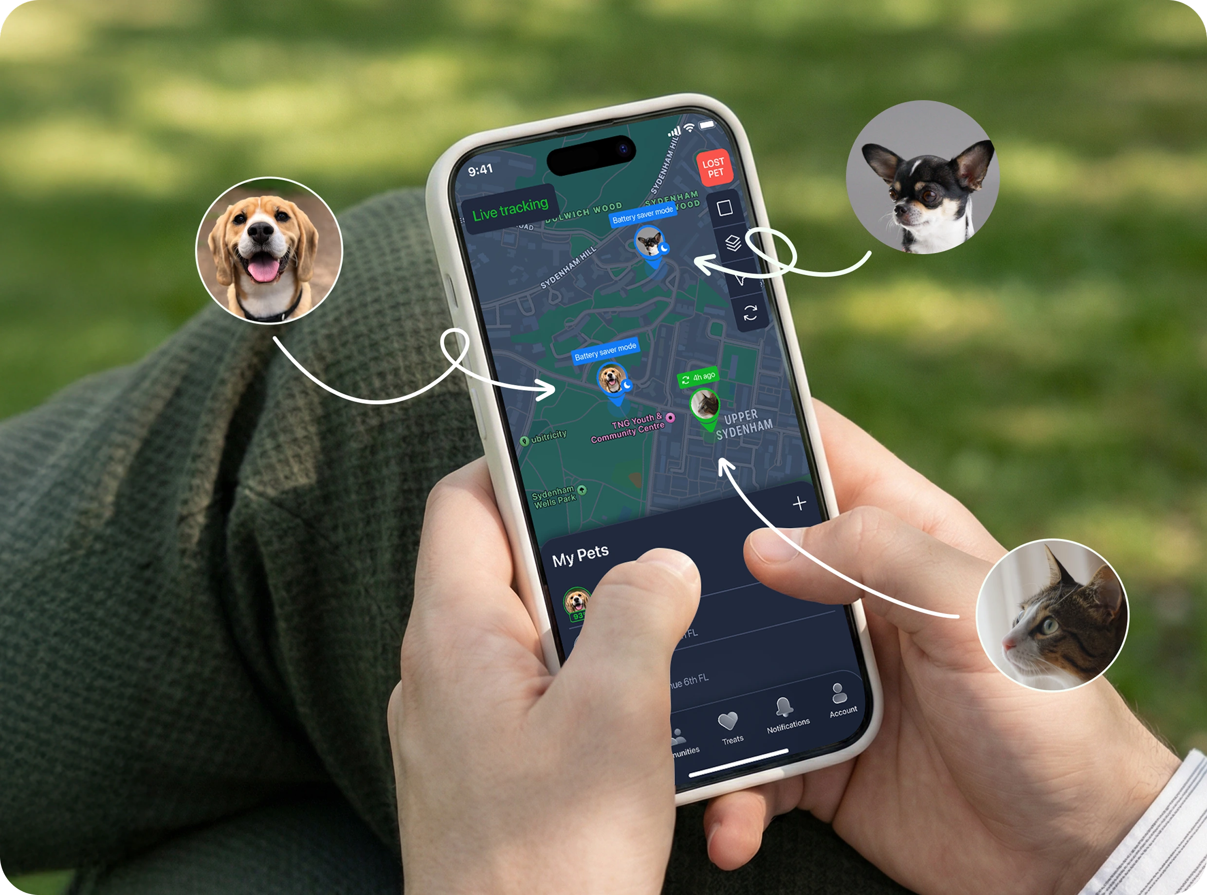 from nearby users if your pet goes
